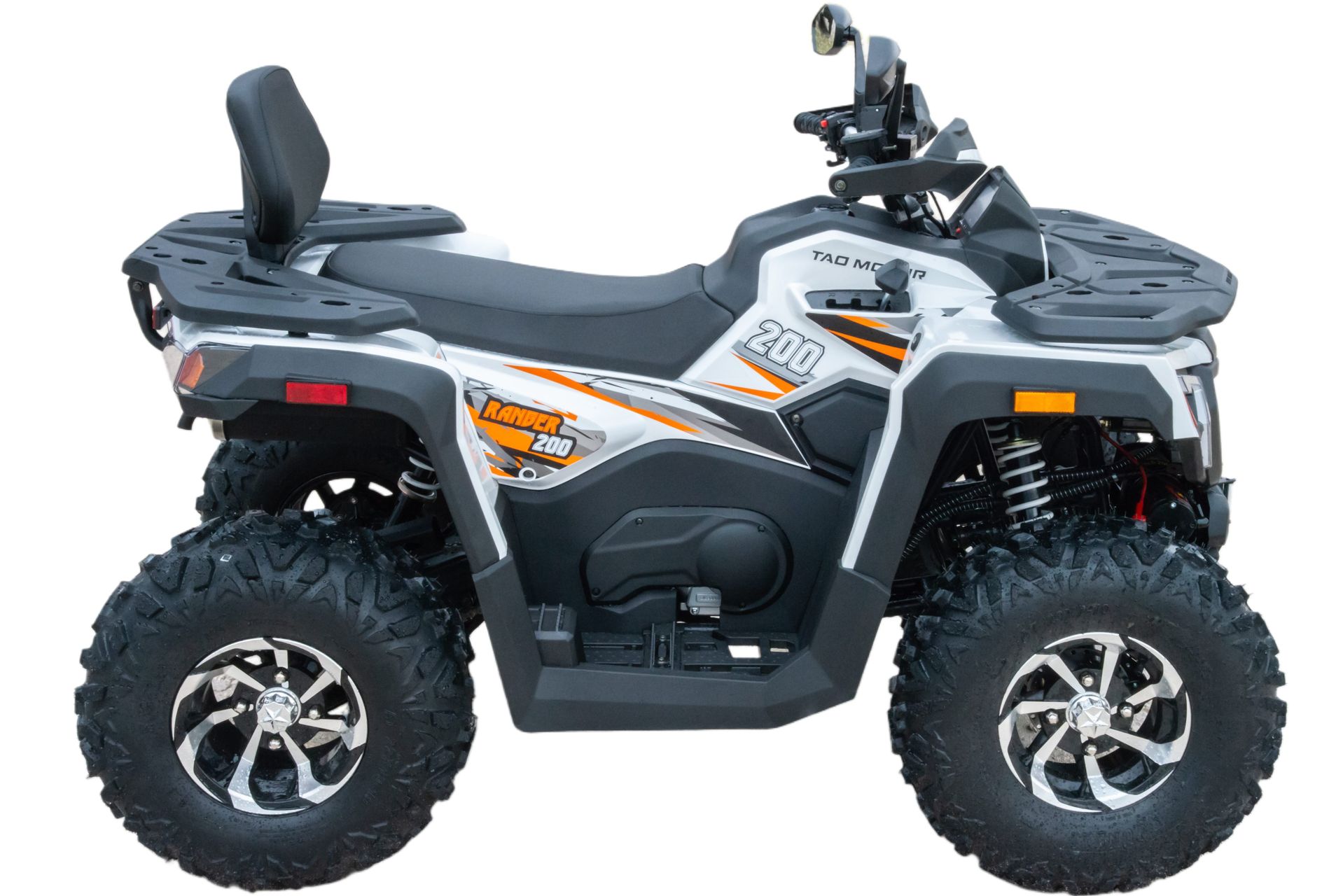 Данная модель оснащена ВЕРТИКАЛЬНЫМ двигателем, автоматической коробкой передач, увеличенными воздухозаборниками, электростартером. Предназначен для езды по бездорожью, имеет хорошую проходимость, прекрасно ведёт себя на песке, грунте и в грязи. Это одна из лучших моделей ATV по соотношению цены и качества. Подходит для новичков и любителей. Новые сбалансированные амортизаторы позволяют легко преодолевать ямы, ухабы и другие неровности. Задняя подвеска с новым, усиленным моно-амортизатором. Квадроцикл доступен в белом цвете с модернизированной линзовонной светодиодной оптикой, увеличенными ходовыми огнями и поворотниками отлично выглядит в своем новом агрессивном стиле. Дополнительная спинка пассажира, а так же USB разъем и прикуриватель. ATV RANGER 200 весит 160 кг, выдерживает нагрузку до 150 кг. Рама стальная, трубчатая, покрашена в цвет. Прочный облицовочный пластик не ломается при сгибании. Квадроцикл имеет оригинальные литые колесные диски, передние - 23х7 R10 и задние - 22х10 R10. Габариты в собранном виде (ДхШхВ): 1800х1000х1280.